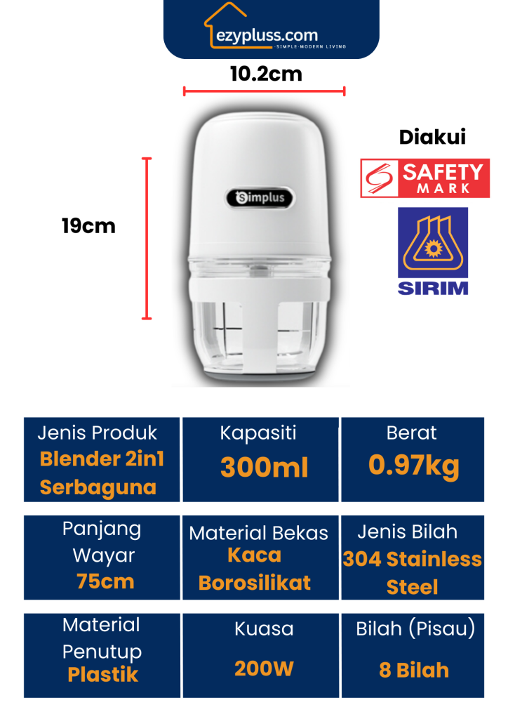 Ramai suri rumah tak suka 2 pin plug atau blender yang jenis cas. Blender SIMPLUS ini direka 3 pin plug untuk memudahkan anda guna dimana mana dan lebih mudah